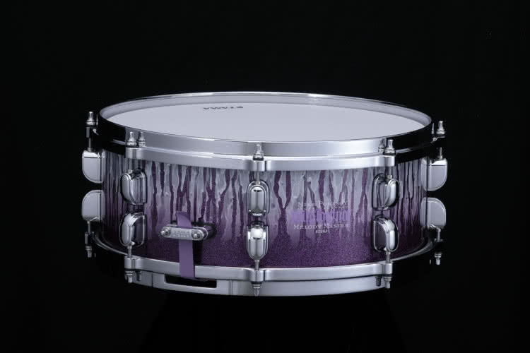 Dostojny, potężny werbel 9mm, 11 warstw afrykańskiego mahoniu plus jedna, zewnętrzna warstwa efektownego drewna tineo (jabłoń indyjska). Rozmiar 14"x6,5", obręcze typu Steel Mighty Hoop (10 dziur). Cena werbla – 4975 zł.